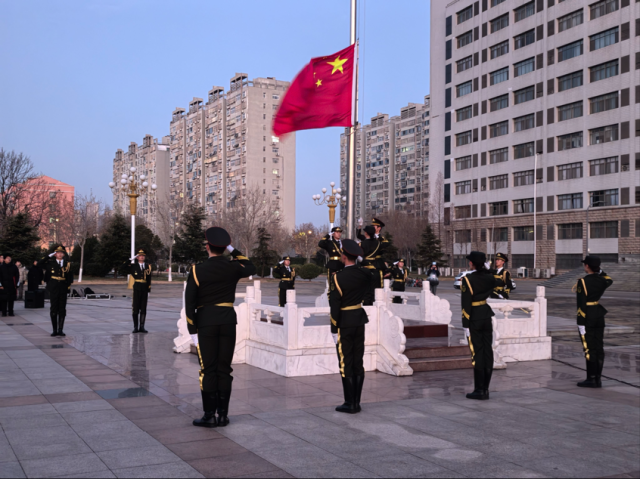 仪式在雄壮的国歌声中拉开序幕,五星红旗迎着朝阳冉冉升起,随后,《光荣啊,中国共青团》的旋律激昂响起,新团员们用嘹亮的歌声唱出对团组织的向往与崇敬。紧接着,团员代表吴菲菲同学站在队伍前方,神情庄重地举起右拳,带领全体新团员庄严宣誓。每一句誓词都掷地有声,每一个眼神都坚定无比,这不仅是一份承诺,更是新团员们肩负起时代使命的决心。他们以拳为誓,将初心镌刻心底,以青春之名,赴时代之约。
