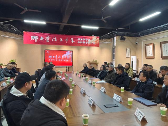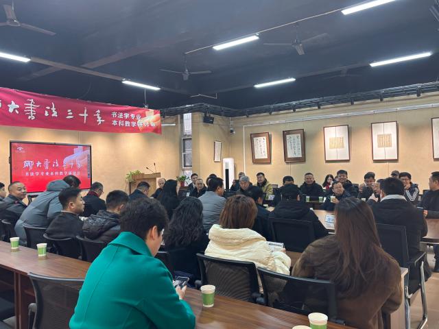 系列活动第二环节为“聊大书法三十年书法本科教学研讨会”,于 跳蛋 召开。于茂阳、郑培亮、刘宗超、刘元飞、向彬、王好军等专家学者依次发言,围绕书法学本科课程体系构建、传统技法教学创新、新时代书法人才培养路径等核心议题展开深入探讨。