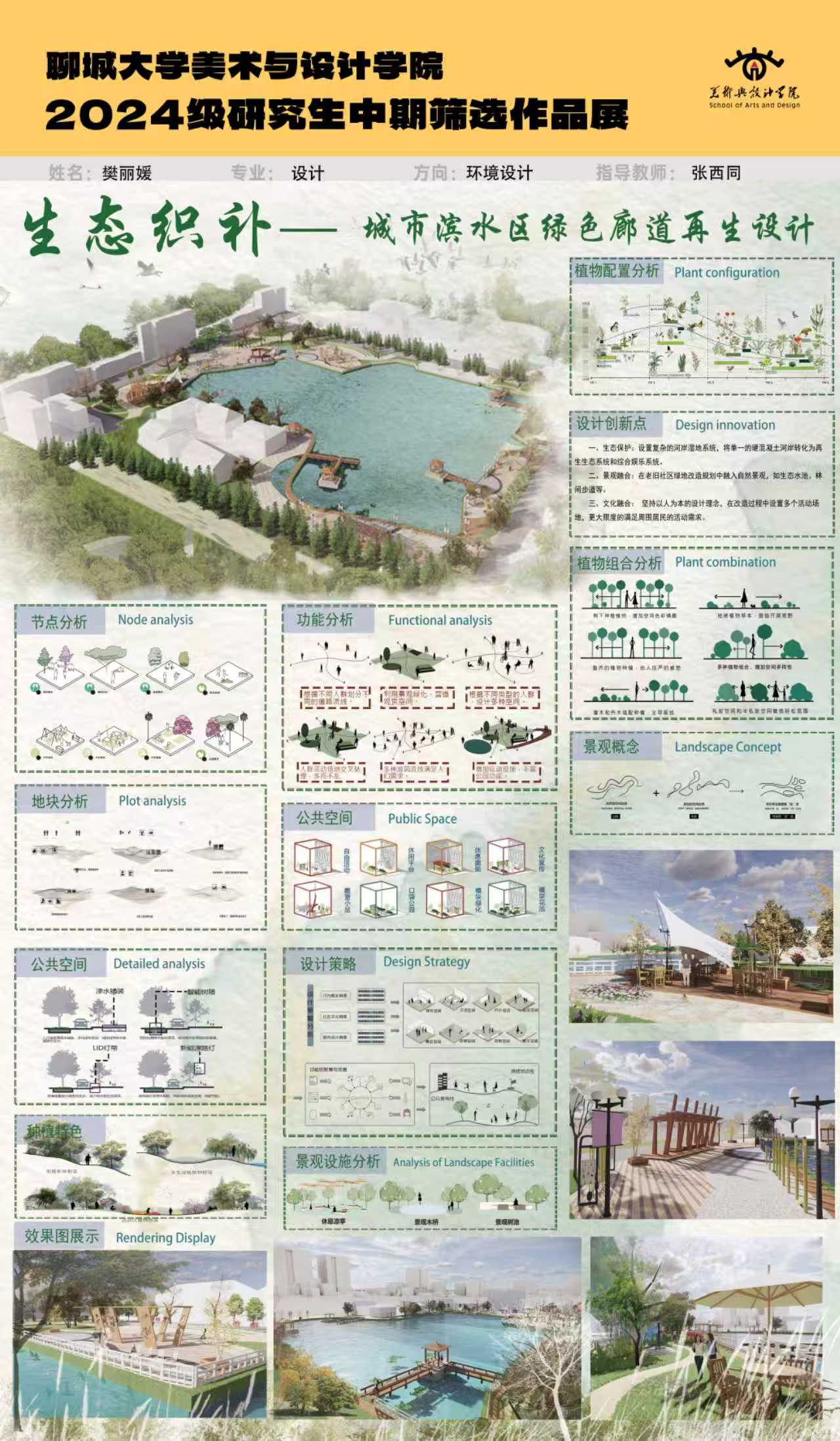 滨水绿地的建设和管理成为城市可持续发展的重要议题,东关街作为聊城市的重要区域,其滨水绿地的现状和发展趋势值得深入研究,但部分滨水绿地因年代久远,存在设施老化、功能单一、空间利用率低等问题,此设计方案针对诸多问题进行改善优化。