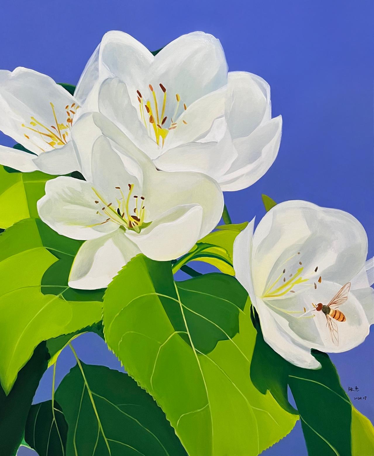 《它轻嗅梨花芬芳》 布面油画 100×120cm 2024.07