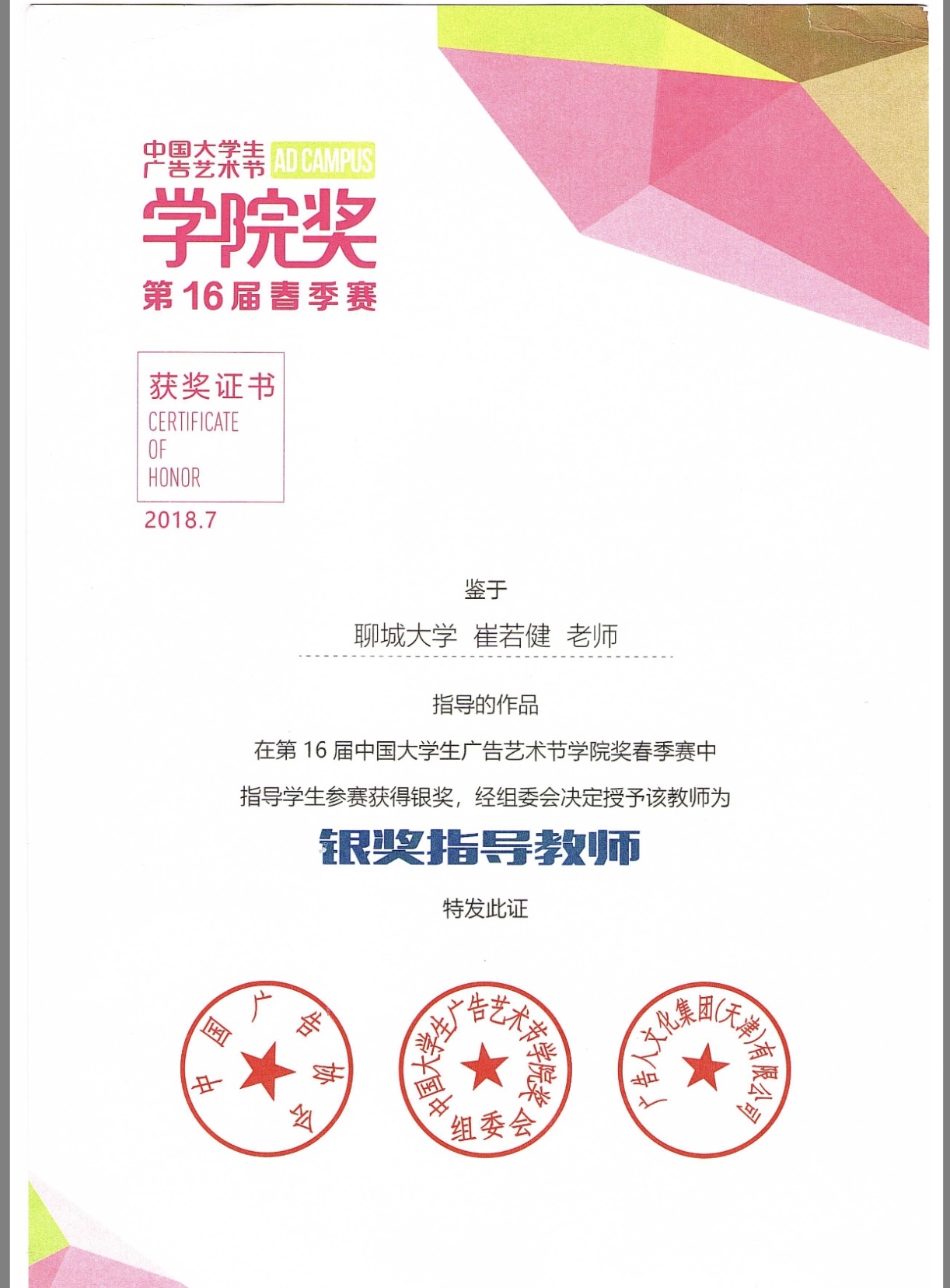 崔若健,男,1978年4月生,山东淄博人。2002年7月毕业于曲阜师范大学美术系艺术设计专业,获学士学位,2011年6月毕业于 跳蛋 美术学院艺术学专业,获硕士学位。2002年任教于 跳蛋 至今。现为 跳蛋 招生工作处副处长, 跳蛋 副教授,硕士生导师。主要从事设计文化、设计教育的研究和视觉传达设计专业基础课教学工作。