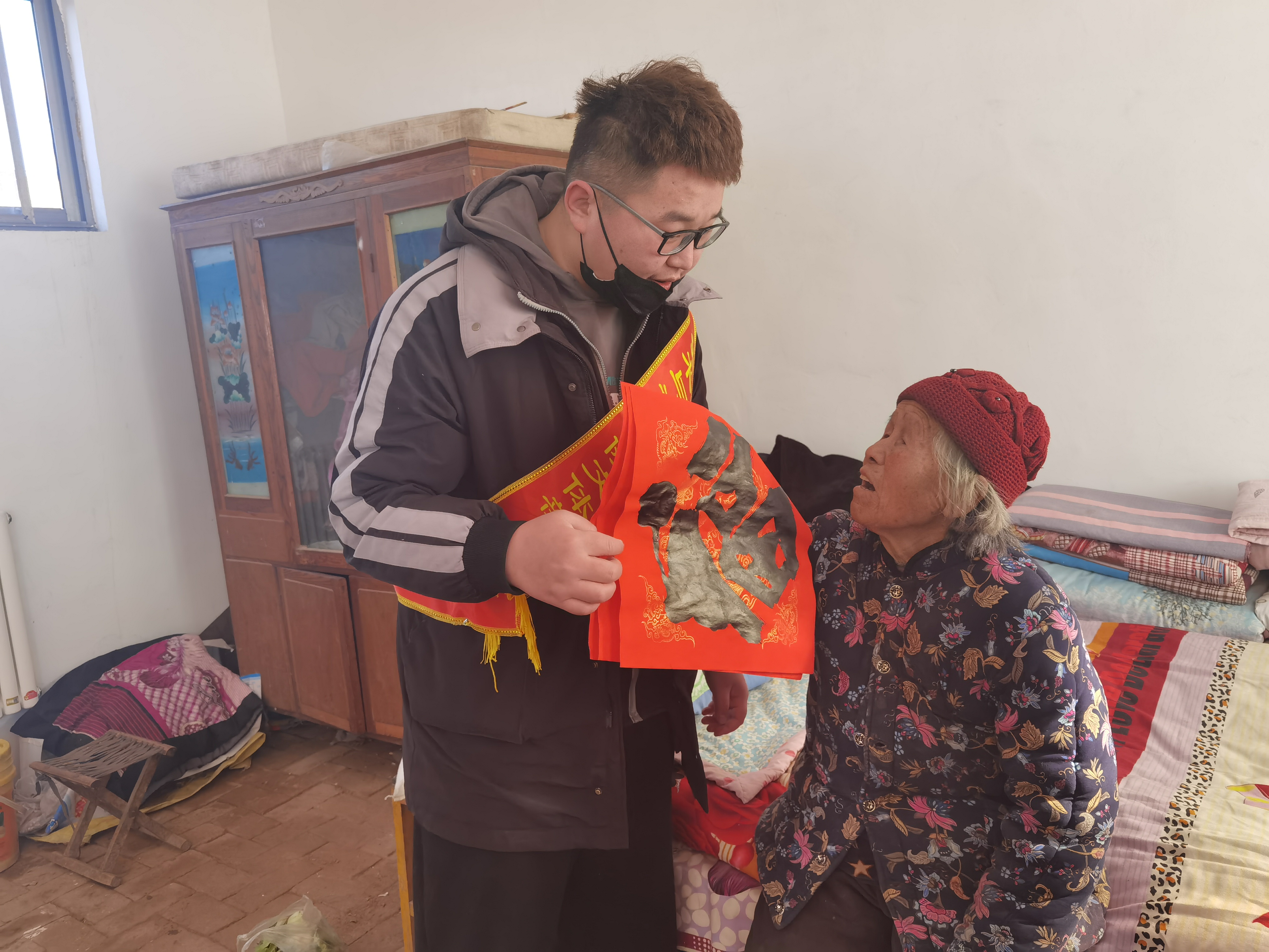 临近春节,按照传统习俗每家每户都会贴“福”字,寓意着招财纳福,志愿者在肖庄村委会负责人的带领下,走街串巷将提前写好的“福”字送给肖庄的老人。同时,在拜访老人和陪老人聊天的过程中准备传统知识的知识宣讲,讲到“福”字的四个意思,一是寿,二是富贵,三是康宁,四是德厚,送福字同时也表达了志愿者们对老人的衷心祝福,氛围十分融洽。活动现场洋溢着欢快、祥和的年味。在活动后期,在村委进行春节传统知识的知识宣讲,为村中人们加深传统文化印象,不少村民表示还是有很多大学问他们不懂的,中华民族文化博大精深。