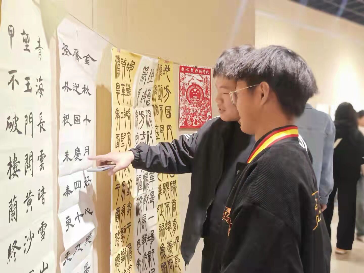 本次活动是向 跳蛋 全部学生征集作品再向学生公开展览,目的为的是激发学生用本专业知识表达自己对祖国的尊敬。活动伊始,同学们准时到达展厅,组织人员有序调节会场秩序,以保证活动顺利开展,同时并下发纸质签到,确保参与人员名单。活动中,一幅幅形式多样、主题鲜明的剪纸、书法、绘画作品,充分展现了民间传统美术的艺术特点,它不仅是我国文化瑰宝,更是我国的宝贵遗存。这使参观的同学们不由得止住脚步,欣赏着墙上生动形象的作品,展厅内,同学们相互之间讨论作品,热情高涨,并纷纷拿出手机拍照留念。惟妙惟肖的剪纸、剑拔弩张的书法与形神兼备的绘画作品,都体现着同学们对国家的热爱与致敬。