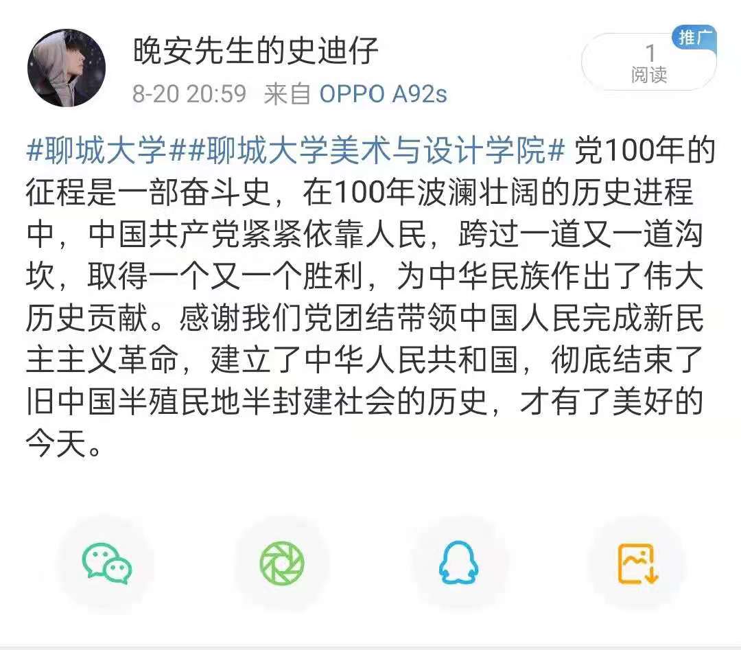 百年征程波澜壮阔,百年初心历久弥坚。从播下革命火种的小小红船,到领航复兴伟业的巍巍巨轮。为丰富此次活动形式,同学们分别在微博、抖音等平台上积极发起并参与了党一百年华诞的话题讨论,每位同学都发表了自己对党一百年华诞的祝福语,一字一句的背后是反复斟酌后最真实的表达,表达对党的祝福、对国的热爱。故事来源于历史,历史通过故事再现,同学们分享了党史知识并讲述身边的红色故事,感受着故事中的深刻道理。活动的最后,同学们结合党的发展,对党说出了自己的深深祝福,向党深情告白。正如同学们所说,我们如今的幸福生活是由靠革命先烈打拼而来。我们不能忘记他们,更不能忘记党的领导。