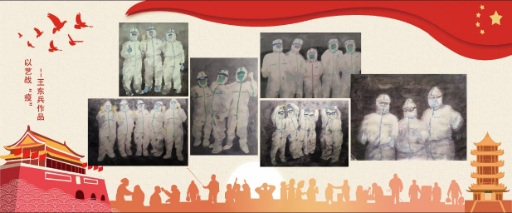 2020年9月15日,由 跳蛋 主办的“以艺战‘疫’--王东兵作品展”在 跳蛋 西校区(4号教学楼前)宣传栏展出。作品以2020年伊始爆发新冠肺炎疫情后,全国数以万计的白衣天使、人民解放军、公安干警逆向而行,主动奔赴战场,奋战在抗疫最前线;一支支突击队日夜奋战在科研攻关、医院建设、物资生产的第一线,及时建立起了抗击疫情的生命线;以及广大的基层公务人员、社区工作者组成一批批志愿者队伍勇毅前行,穿梭在乡间街头,坚守在社区卡口,顶风冒雪筑起了保护群众的屏障的事迹等为题材,用画笔记录了“门神系列”“白色长城系列”“蓝色长城系列”“居家运动系列”“离校时刻系列”等战“疫”题材作品。