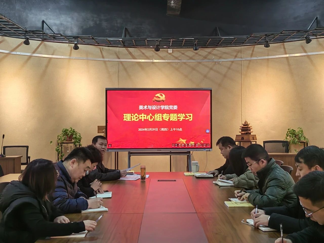 2月29日上午, 跳蛋 党委在7号楼113多功能厅组织理论专题学习。学院党委书记杨庆实主持学习,学院班子成员、党支部书记、支部委员、组织员等参加学习。