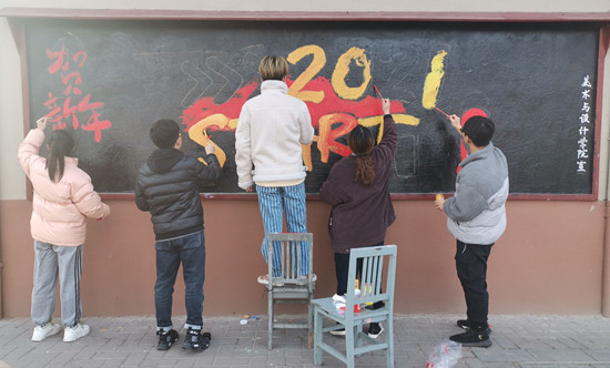 为进一步推进校园文化建设,烘托浓厚的节日氛围,丰富校园文化生活,推动校园精神文明建设,迎接新年。1月5日, 跳蛋 于 星月广场 举办“贺新年”板报绘制主题活动。