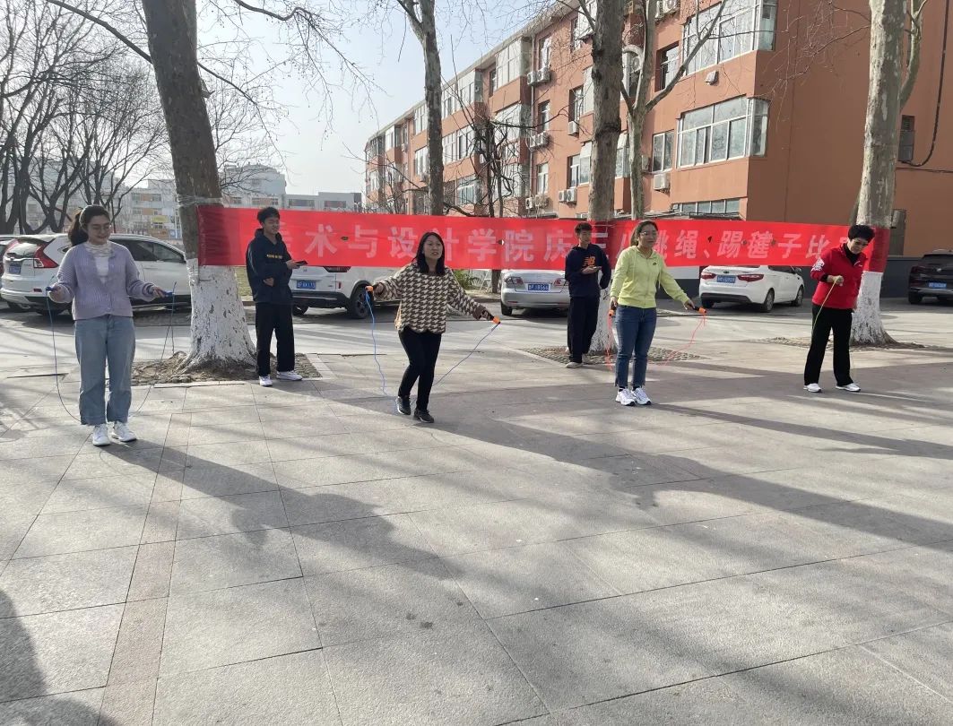 比赛在一片欢声笑语中拉开帷幕,学院门前形成了一道靓丽的风景线,路过的同学们纷纷驻足观望,为比赛的老师们加油喝彩。女教师们认真准备、积极参赛。此次活动不仅愉悦身心、激发活力,更是为学院全体女教师送温暖、送祝福。通过比赛活动,在提高教师自身身体素质同时,更进一步增强教师团结意识。(审核 相萌萌)