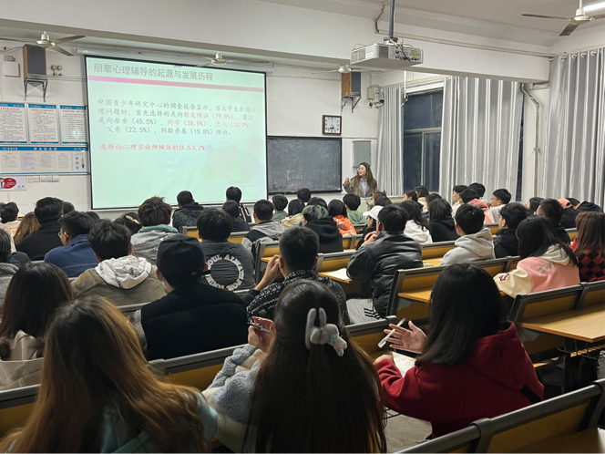 于2022年11月16日下午,在七号楼201合堂开展朋辈辅导活动。由朱晴老师担任主讲人。