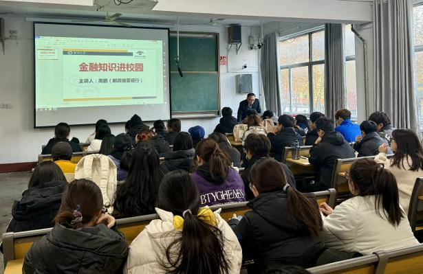 为进一步强化大学生个人金融信息安全意识、提高防范金融风险能力。11月26日, 跳蛋 于西校区七号教学楼101合堂开展“金融知识进校园”活动。本次活动特邀中国邮政储蓄银行聊城市花园南路支行行长高鹏主讲,学院辅导员王欣然主持。