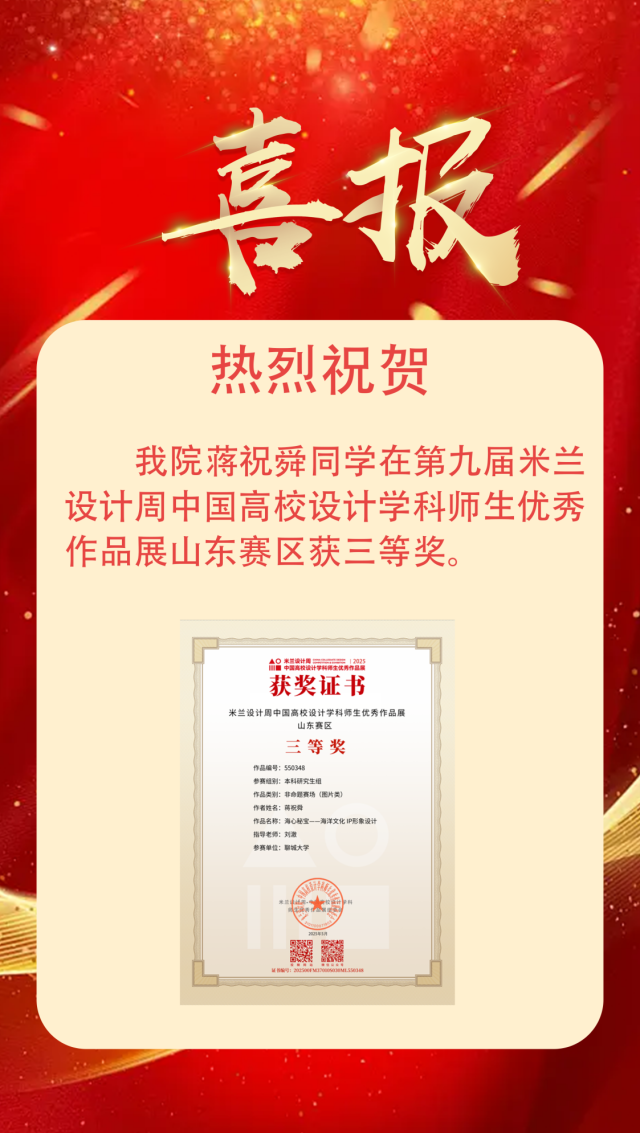 喜报| 跳蛋 学子荣获第九届米兰设计周中国高校设计学科师生优秀作品展山东赛区三等奖