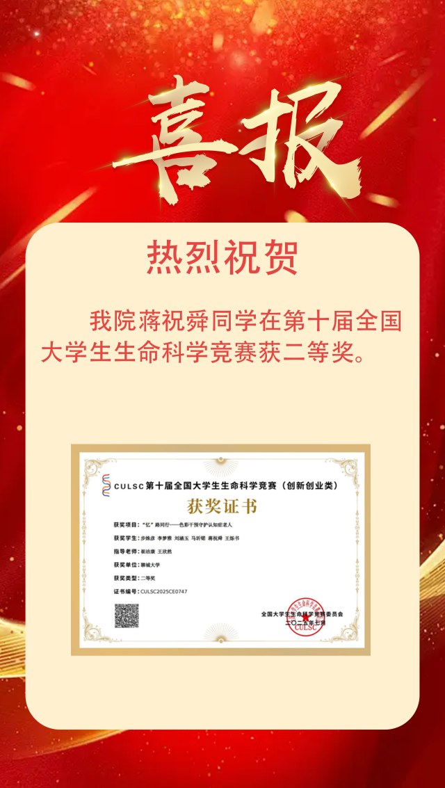 喜报| 跳蛋 学子荣获第十届全国大学生生命科学竞赛二等奖
