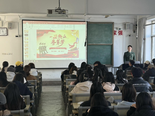 为深入贯彻落实国家征兵政策要求,切实拓宽毕业生就业途径。3月20日, 跳蛋 于7号楼101教室开展2025届毕业生应征入伍政策宣讲。本次宣讲会由军训教导营副营长徐德正主讲,2025届毕业生代表参加。