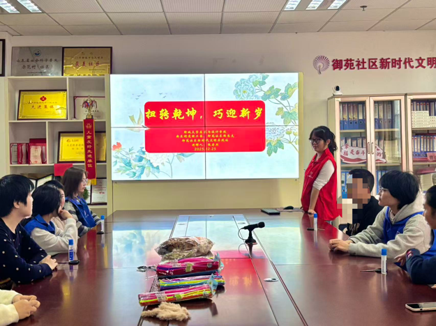 为了提高大学生的社会实践能力,营造良好的社区氛围。12月25日, 跳蛋 “与美同行”家庭经济困难学生实践队于御苑社区举办“扭转乾坤,巧迎新岁”社会实践活动。