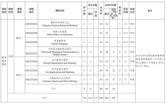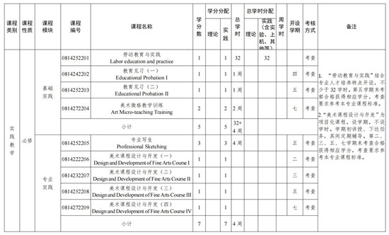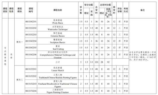 2.实践教学选修课中,“学科竞赛”所要求的“省级以上期刊”“省级学科竞赛”的认定范围参考学校科研管理条例,由学生提供支撑材料并提交美术系主任,汇总后由学院教授委员后审核通过后可认定学分。