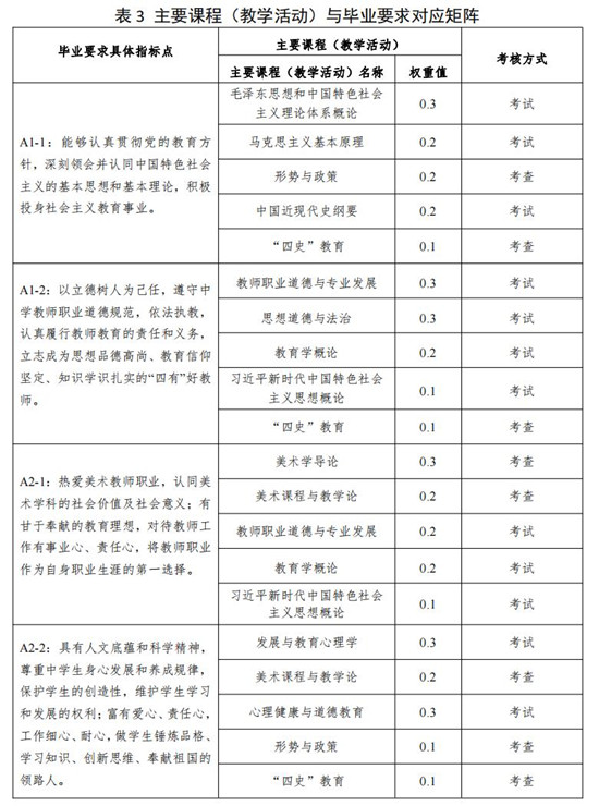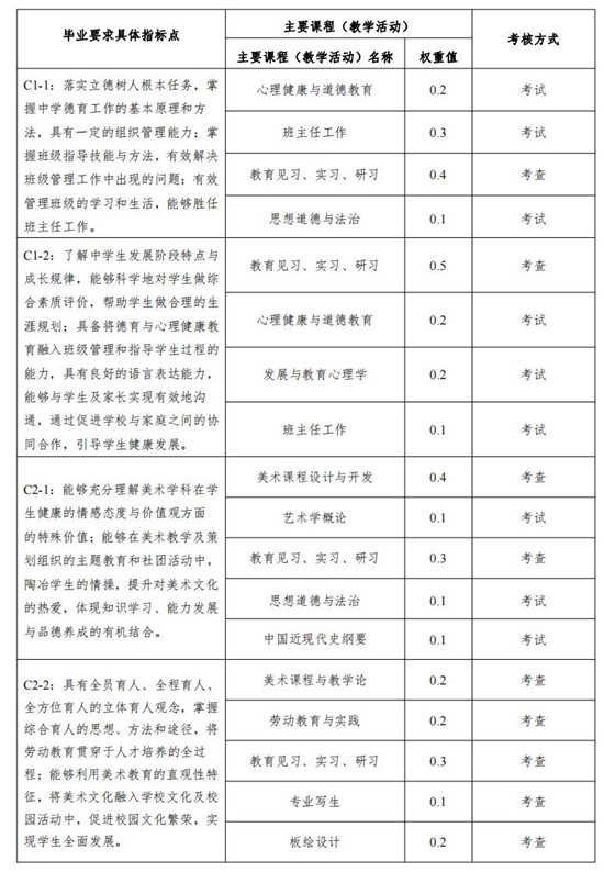 目标 3:具备较强的教学能力与育人能力。了解国家教育发展的政策法规,具备先进的美术教育理念,具有娴熟的教学设计能力、教学组织与实施能力,能结合美术学科教学实际问题运用教育学理论开展美术教学研究和改革。