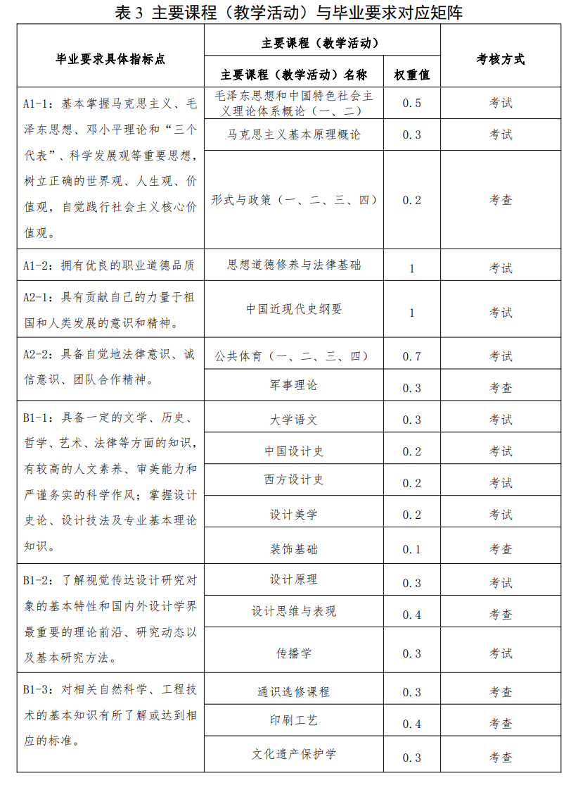 六、主要课程(教学活动)与毕业要求对应矩阵(见表 3)