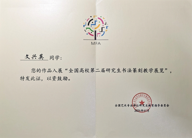 2021年11月由全国艺术专业学位研究生教育指导委员会主办的“全国高校第二届研究生书法篆刻教学展览”评审活动在西安圆满结束。