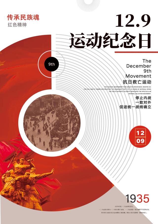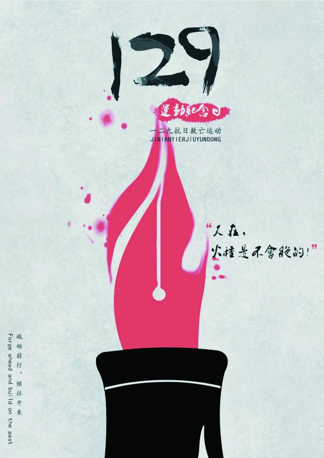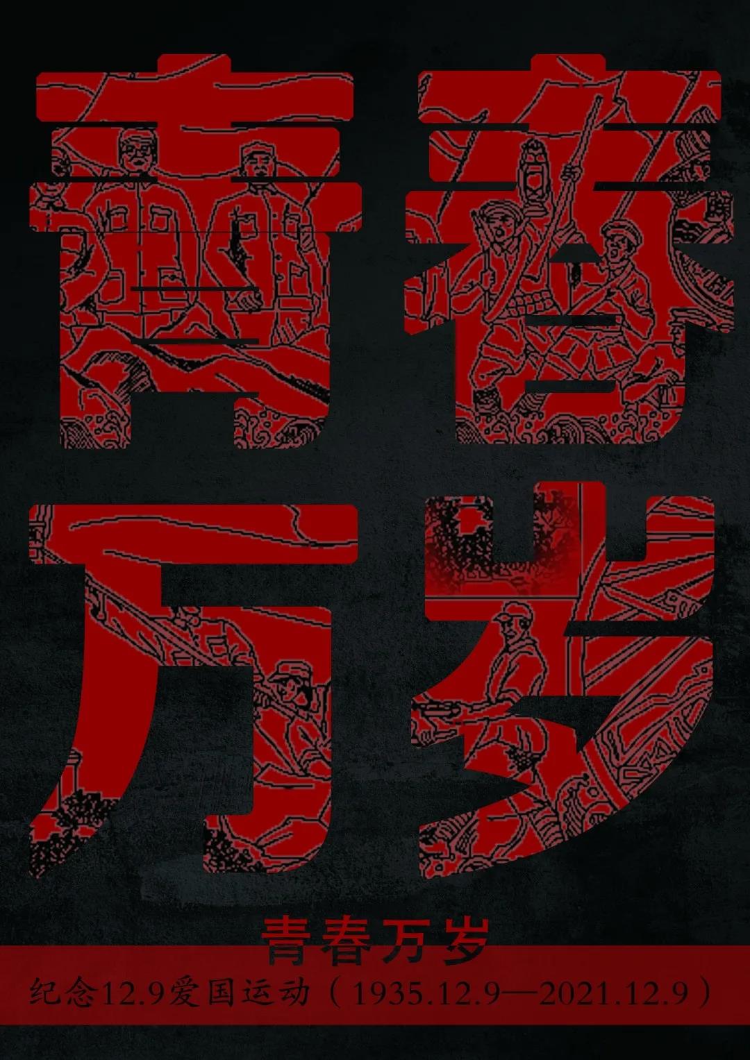 值“一二·九”运动86周年到来之际,为弘扬爱国主义精神,激发全体学生爱党爱国热情,展示新时代学生的青春风采, 跳蛋 研究生会于2021年11月8日-11月30日举办了以“弘扬爱国旋律,传承红色精神”纪念一二·九运动为主题的书画设计比赛。