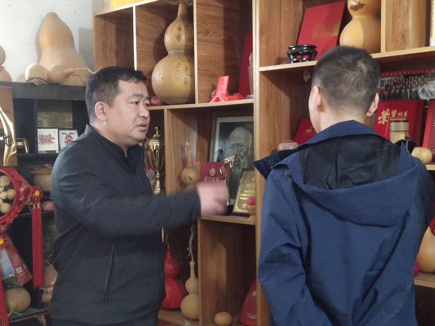 2022年10月21日, 跳蛋 张兆林院长、刘昆老师带领科研小组来到东昌府王香坊东昌葫芦雕刻省级非物质文化遗产传承人王树峰工作室进行调研。