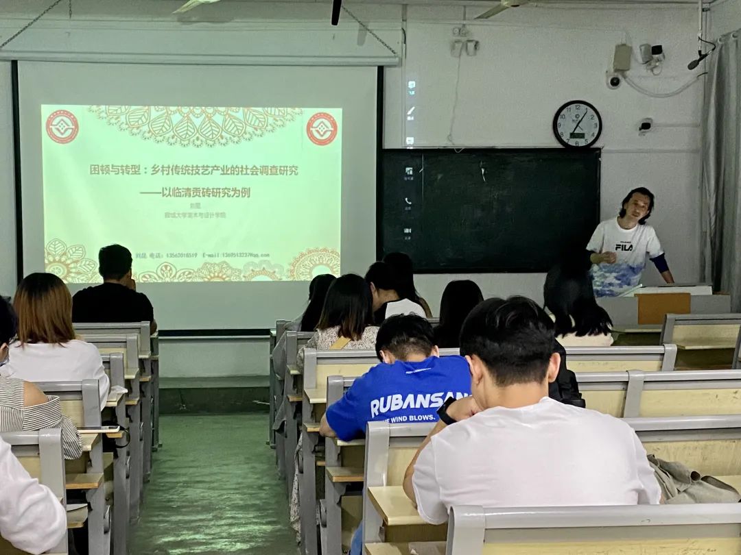 在对临清贡砖烧制技艺流程讲述中,刘昆老师运用图文并茂的形式让同学们对这一非物质文化遗产的制作工艺有了更为清晰直观的感受。同时,对临清贡砖的历史价值和社会价值进行了深层次的剖析,并阐述了其中所蕴含的造物思想,即材尽其用、惜物用物、物以载道。最后,对于其保护与传承方面,刘昆老师重点讲述了相应策略。