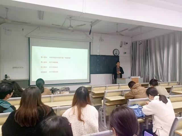 2022年11月10日在7号楼401教室, 跳蛋 方建光副教授为2021级全体研究生作题为《书韵画理—中国书画收藏与鉴赏概说》的讲座。